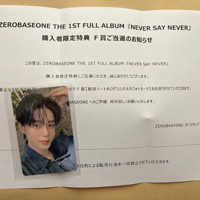 제베원 zb1 지웅 never say never 타워 레코드 시리얼 F상 럭키 드로우 당첨 인증서와 함께 발송합니다. 트레이딩 카드는 이중 슬리브, 경질 케이스, 방수 처리하여 발송합니다.