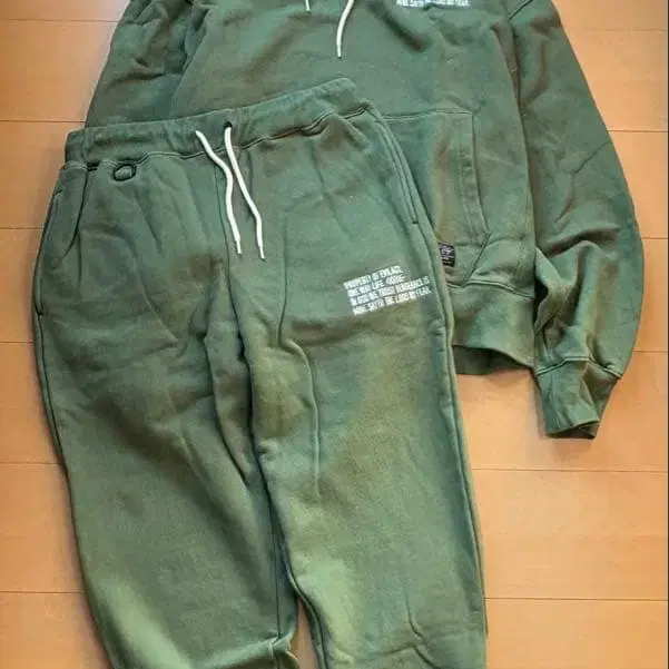 상하의 셋업 맨투맨 사이즈 후드티 L 사이즈 팬츠는 M 사이즈 한 번 착용 후 세탁했습니다. 다림질 주름이 있지만 새상품급입니다.