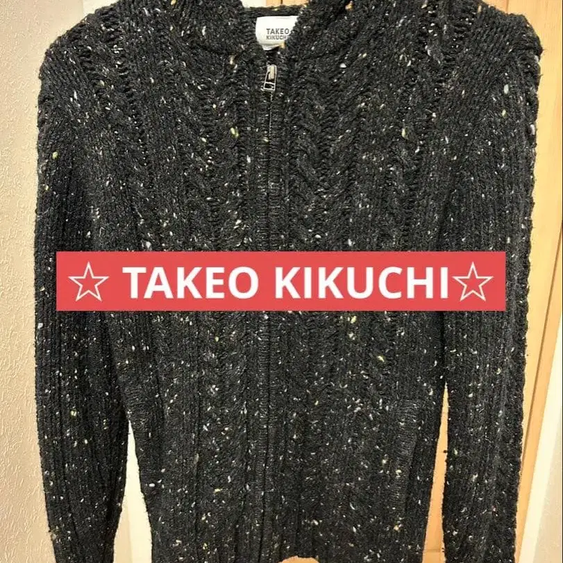 TAKEO KIKUCHI/블랙 니트 후드티 후드 부착 새상품급