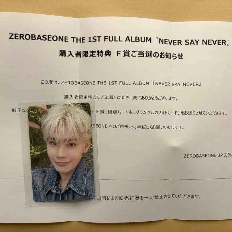 제로베이스원 zb1 taerae F상 시리얼 never say never 당첨 인증서와 함께 발송됩니다. 이중 슬리브 + 경질 케이스 + 방수 대책을 하여 발송합니다.