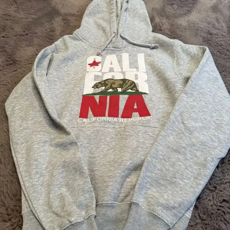 캘리포니아주의 그래픽이 특징인 그레이 후드티. - 브랜드: REPUBLIC BLUES - 사이즈: S - 디자인: 캘리포니아주 그래픽 프린트 - 색상: 그레이 방문해 주셔서 감사합니다. 사이즈 - S