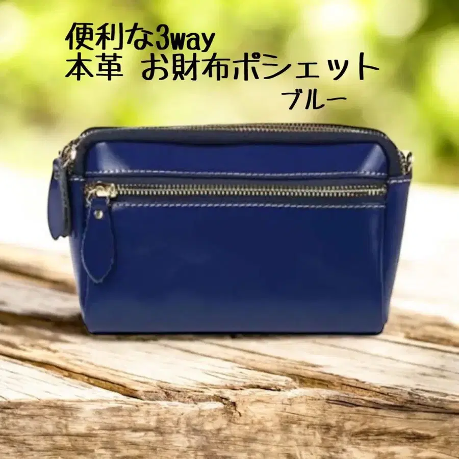 [ 편리한 3way ] 천연 가죽 지갑형 미니백 숄더백 블루