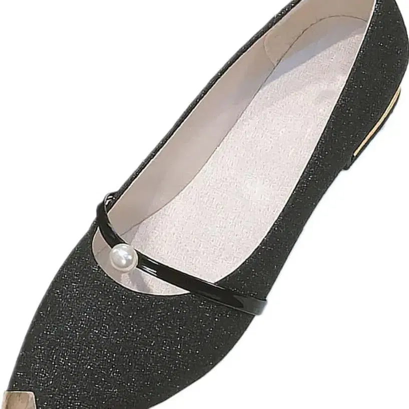 스팽글과 펄 장식이 특징인 플랫슈즈. 상자 없음. - 색상: 블랙 - 디자인: 스팽글 장식 - 장식: 펄 장식 스트랩 - 힐 타입: 플랫 - 밑창: 러버 솔 방문해 주셔서 감사합니다.