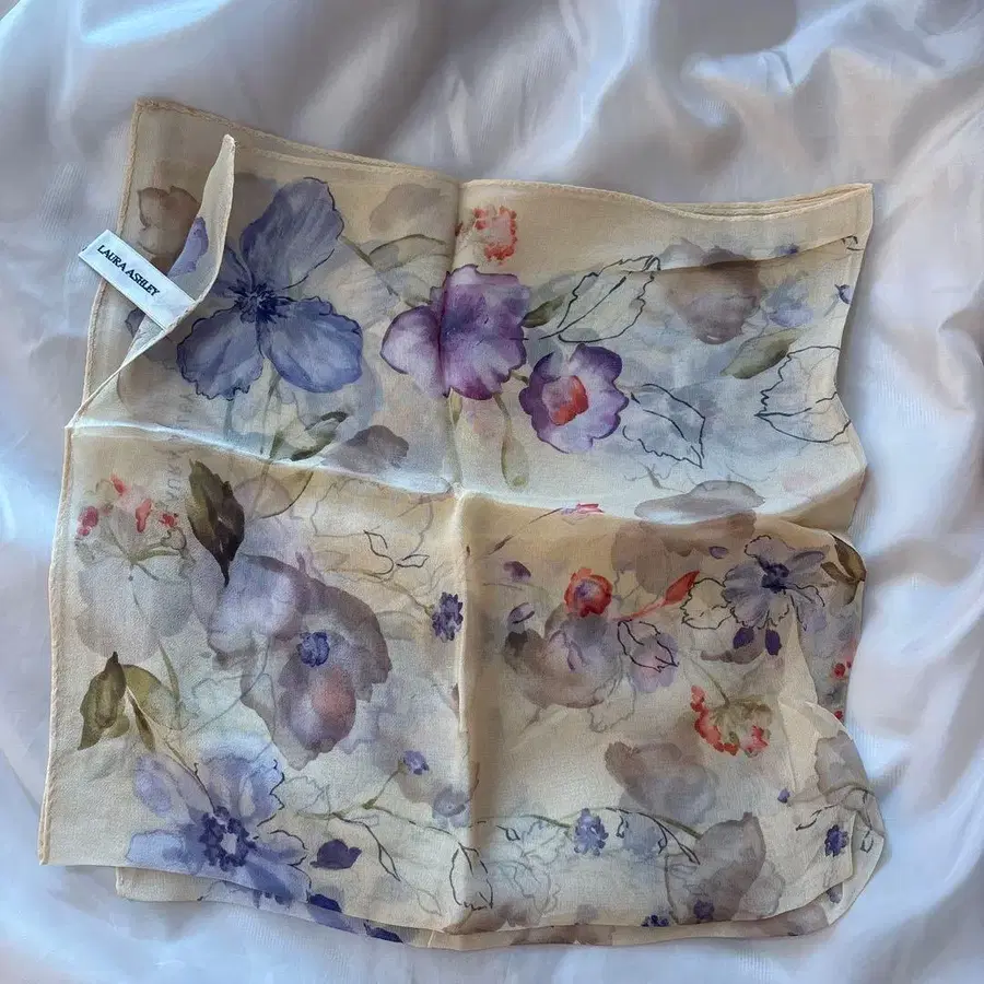 크림색 플라워 프린트 스카프, 실크 같은 질감으로 엘레강트한 스타일에 최적. - 색상: 크림색 꽃무늬 - 소재: 실크 같은 질감 - 디자인: 플라워 프린트 - 브랜드: LAURA ASHLEY 방문해 주셔서 감사합니다.