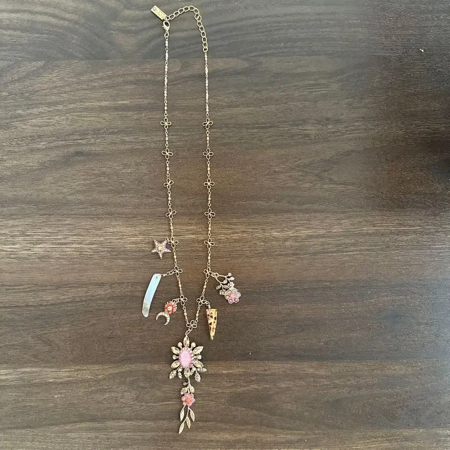 아마로 목걸이 긴자 마츠야에서 구매 거의 미사용 - 디자인: 플라워 모티브와 다채로운 참 - 소재: 금속제 체인과 장식석 - 색상: 핑크, 골드, 화이트 - 특징: 별 모양, 달 모양, 꽃 모양 참 포함 방문해 주셔서 감사합니다.