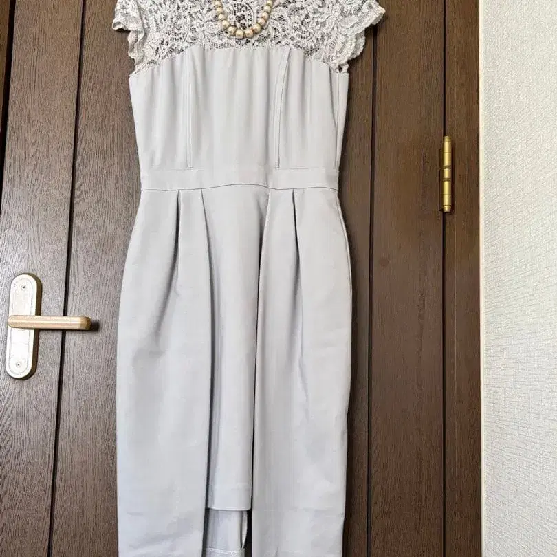 라이트 그레이 레이스 슬리브 드레스