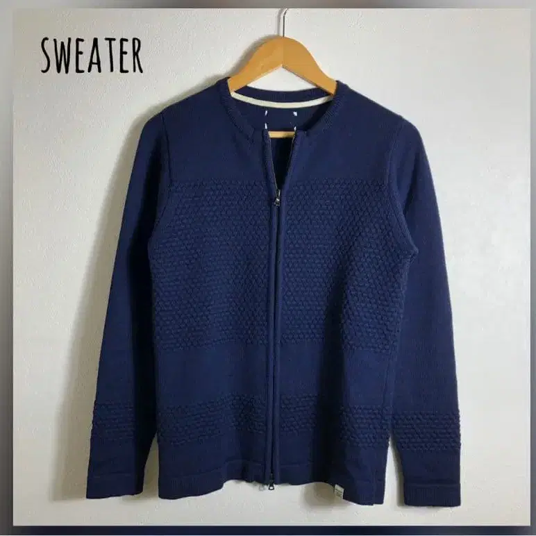 자동 번역되었어요. 원문보기집업 디자인의 네이비 니트 스웨터