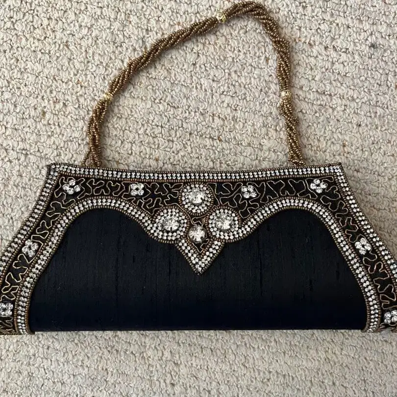 심플하고 엘레강트한 블랙 실크에 자수 장식이 더해진 아름다운 파티백/클러치백.