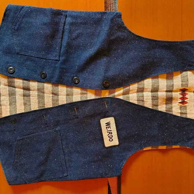 WEIRDO의 데님 베스트. 10회도 사용하지 않아 상태가 상당히 좋다고 생각합니다. - 색상: 데님 블루 - 디자인: 스트라이프 안감, 포켓 부착 - 브랜드: WEIRDO 방문해 주셔서 감사합니다.