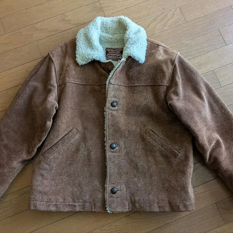 방문해 주셔서 감사합니다. 숏 기장의 천연 가죽 런치 코트입니다. 약간의 얼룩이 있지만 연식에 비해 좋다고 생각합니다. 어깨 너비 53cm 가슴 너비 60cm 소매 길이 59cm 기장 64cm 잘 부탁드립니다.