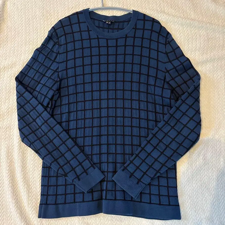 THEORY 체크 무늬 니트 스웨터 네이비 그레이