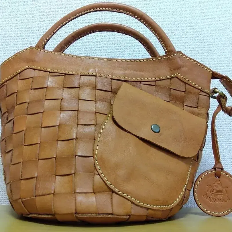 뜨개질 가죽 숄더백