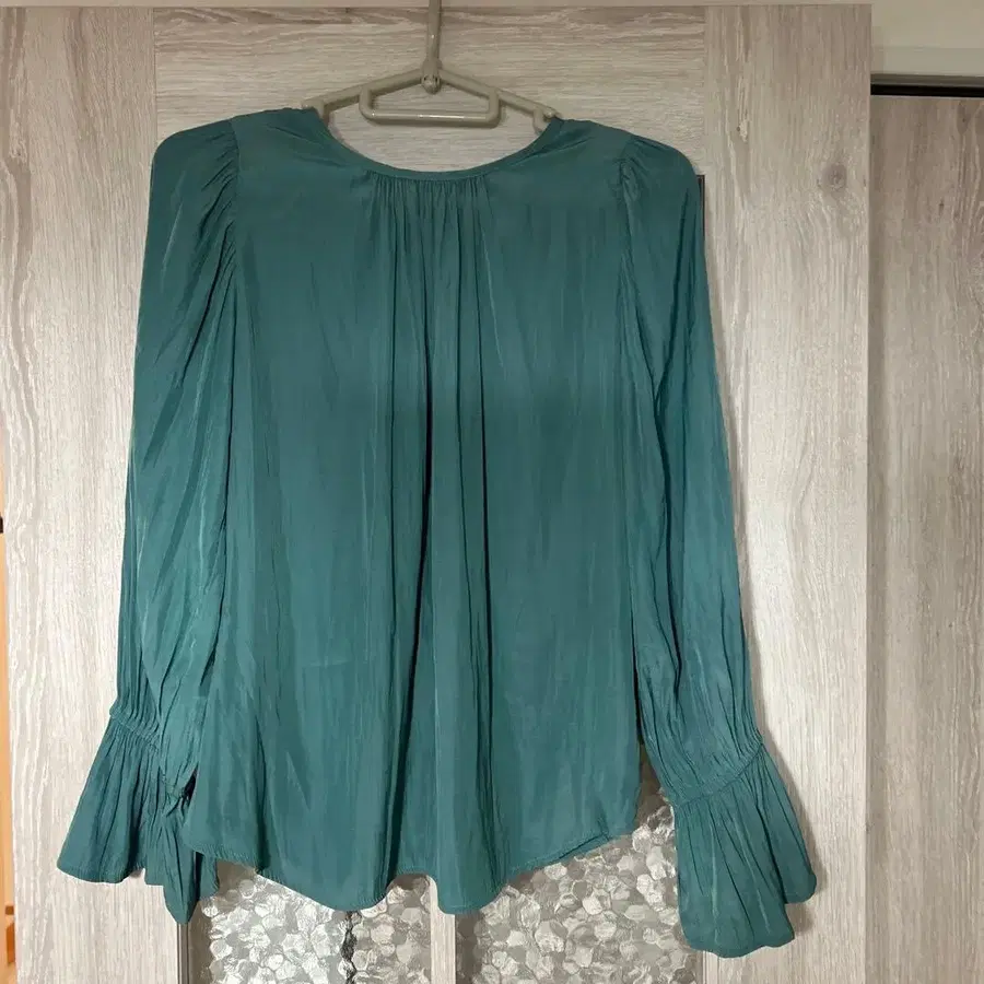 소매 셔링 새틴 블라우스