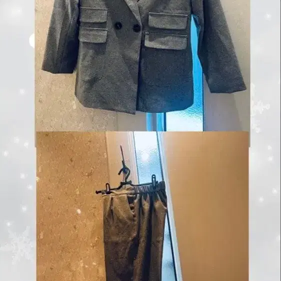 그레이 색상의 자켓과 팬츠 셋업입니다. 폴리에스테르 소재로 쾌적한 착용감을 제공합니다. 실내에서 시착 후 자택 보관했습니다. 새상품이지만 접힌 자국이 있습니다. - 색상: 그레이 - 스타일: 자켓과 팬츠 셋업 - 소재: 겉감: 폴리에스테르 95.4%, 폴리우레탄 4.6%, 안감: 폴리에스테르 100% 방문해 주셔서 감사합니다. 색상 계열 - 그레이 계열 계절 - 올 시즌 얼룩, 찢김, 냄새 등 - 없음