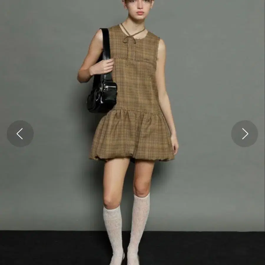 다리치 바이어스 체크 데님 미니 원피스 미사용 새상품