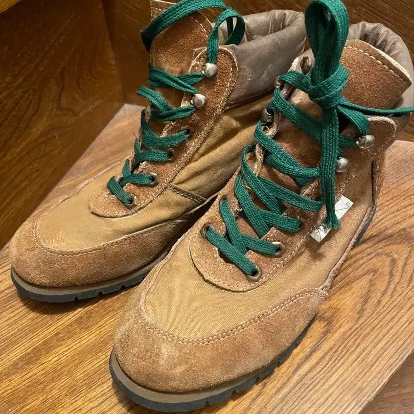 90년대 제품으로 추정됩니다. 사이즈 표기는 없지만 25.5 - 26.0 사이즈감입니다. 스웨이드와 나일론 소재의 하이컷 등산화, 그린 색상의 끈이 특징입니다. - 색상: 브라운 - 끈 색상: 그린 - 디자인: 하이컷 - 소재: 스웨이드와 나일론 - 용도: 등산, 트레킹 비브람 밑창 15년 전에 구매하여 보관하고 있었습니다. 방문해 주셔서 감사합니다.