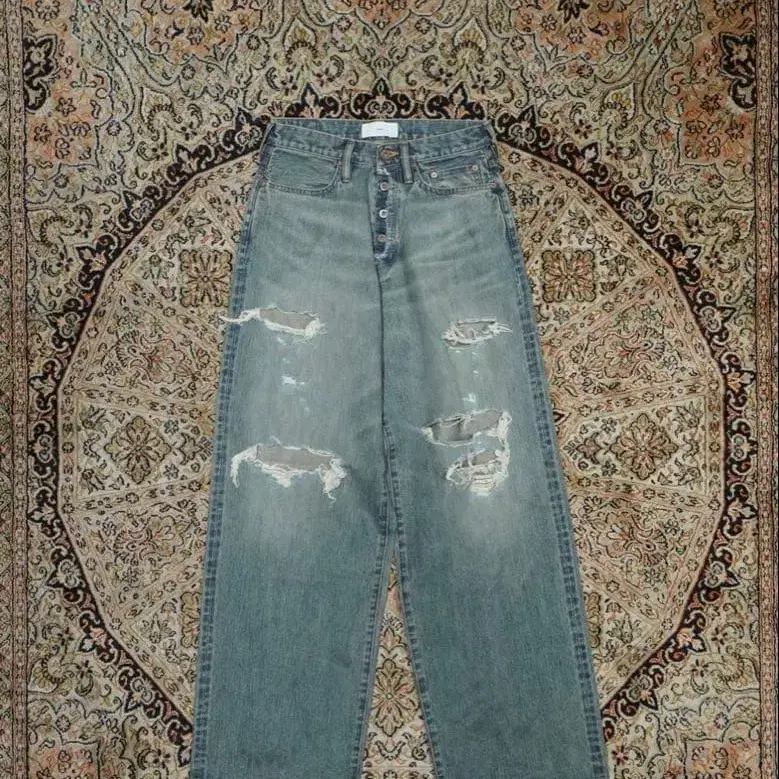 슈가힐 데미지 데님 2회 정도 사용했습니다. 정가 73,700엔에 구매한 것입니다. size: 30 허리 74cm 밑위 27cm 인심 87cm 허벅지 34cm 밑단 폭 28cm