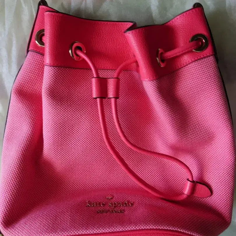 핑크 버킷 숄더백, 드로우 스트링 개폐, 외부 포켓 부착. - 브랜드: Kate Spade - 색상: 핑크 - 디자인: 버킷형 - 특징: 드로우 스트링 개폐 - 포켓: 외부 포켓 있음 방문해 주셔서 감사합니다.