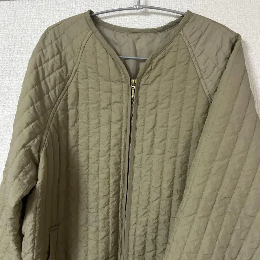 올리브 그린 색상의 퀼팅 자켓입니다.