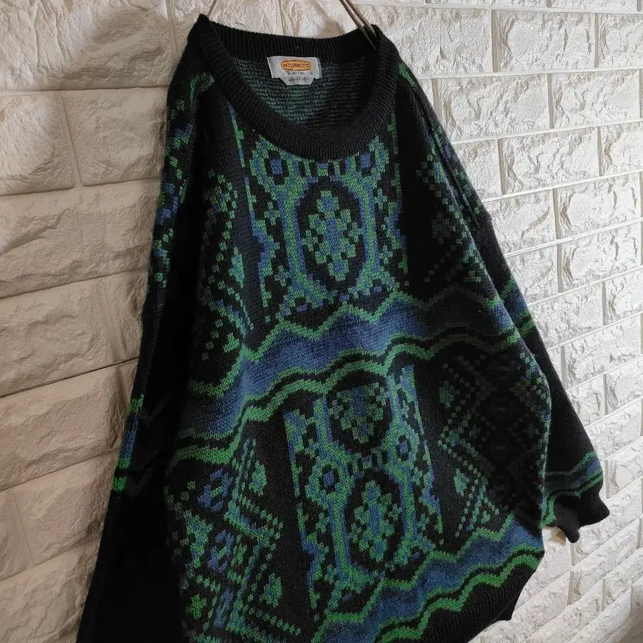 니트 스웨터 올 패턴 기하학 패턴 그린 L