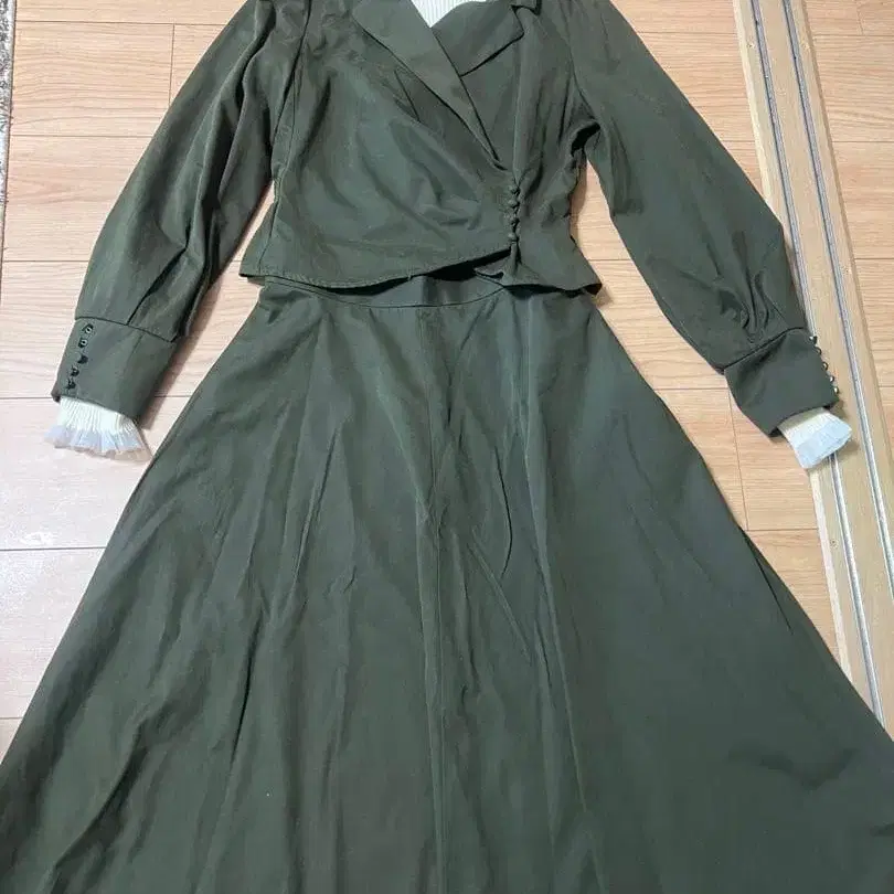 앤티크한 디자인이 특징인 셋업입니다! (인스타그래머가 입고 있는 것을 보고 구매했지만, 브랜드명은 잊어버렸습니다..)