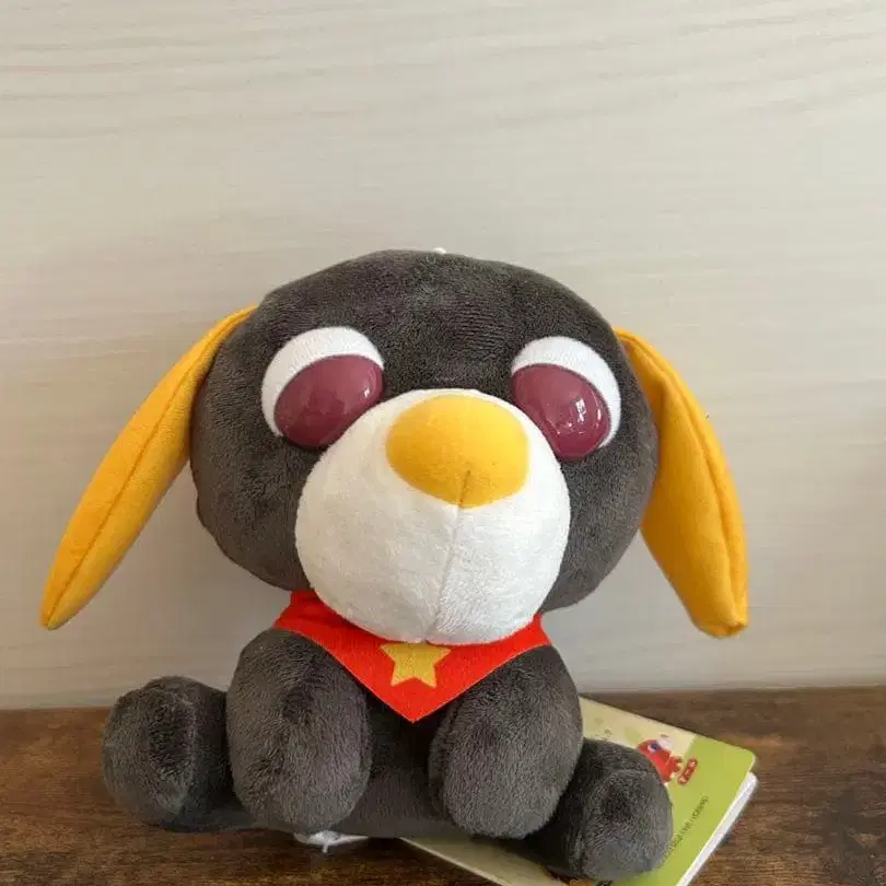 오차이누 론 봉제 인형 - 색상: 그레이 - 특징: 귀가 옐로우 컬러, 빨간색 망토 - 디자인: 뒤쪽에 잎사귀 무늬 - 눈 색깔: 빨간색 - 사이즈: 소형 방문해 주셔서 감사합니다.
