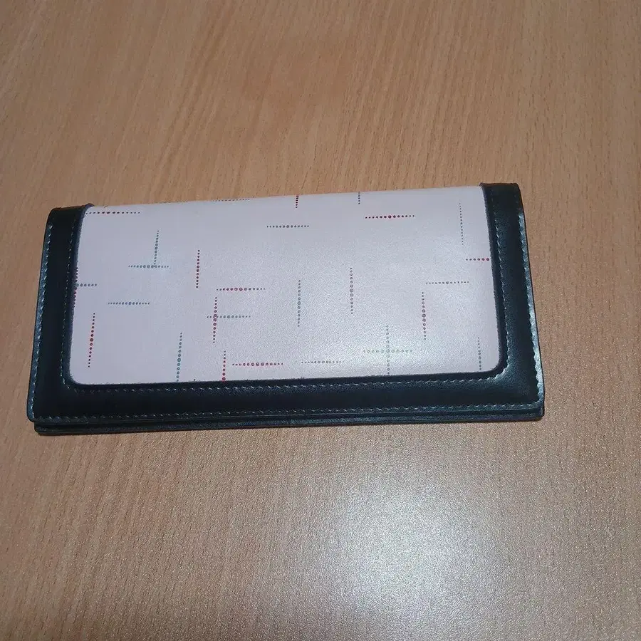 핑크와 블랙의 콤비네이션에 컬러풀한 스티치가 특징인 장지갑.