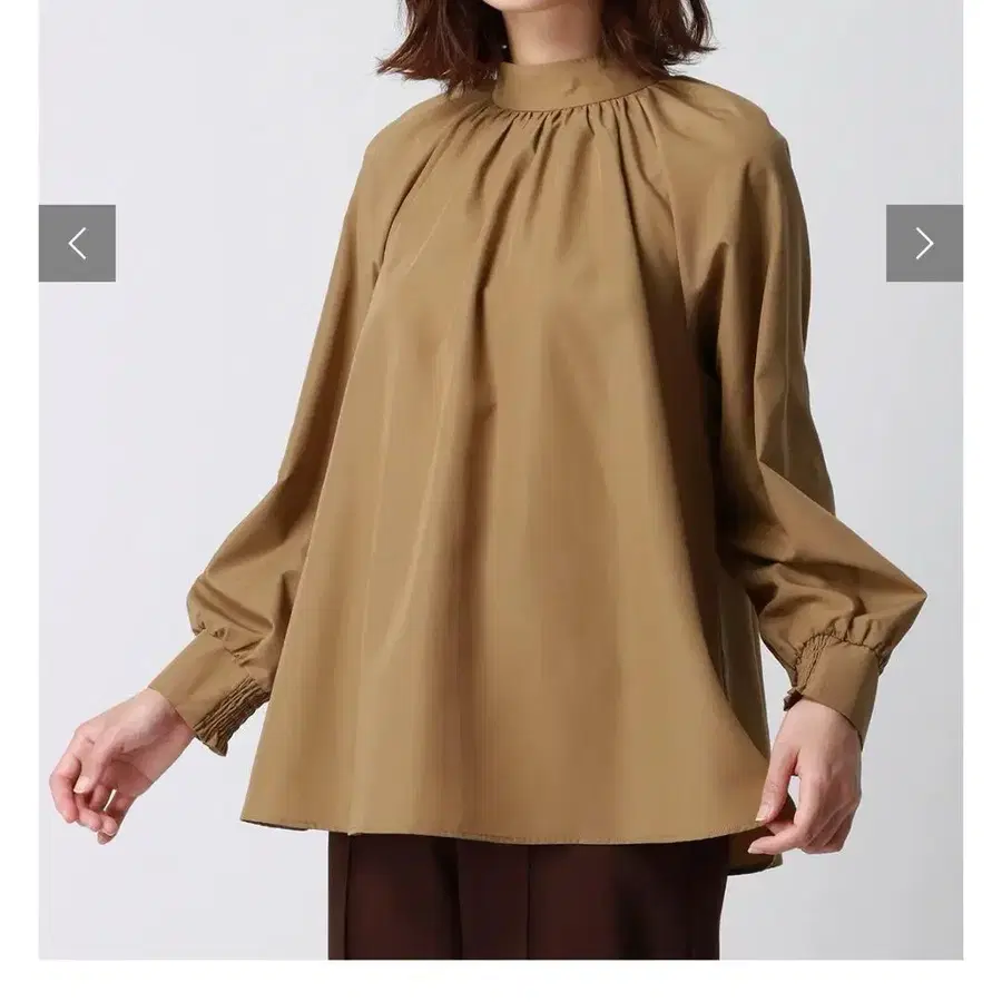 SUIT SQUARE 수트 스퀘어 온라인에서 구매. 시착만 한 미사용 상품입니다. 택은 제거했습니다. 하이넥 개더 볼륨 블라우스 워셔블 정가 7590엔 색상 카멜 사이즈 프리