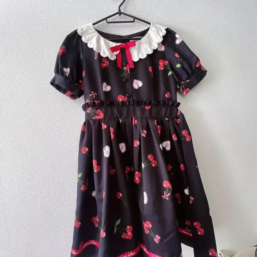 앙크루즈 체리 패턴 카라 부착 퍼프 슬리브 원피스
