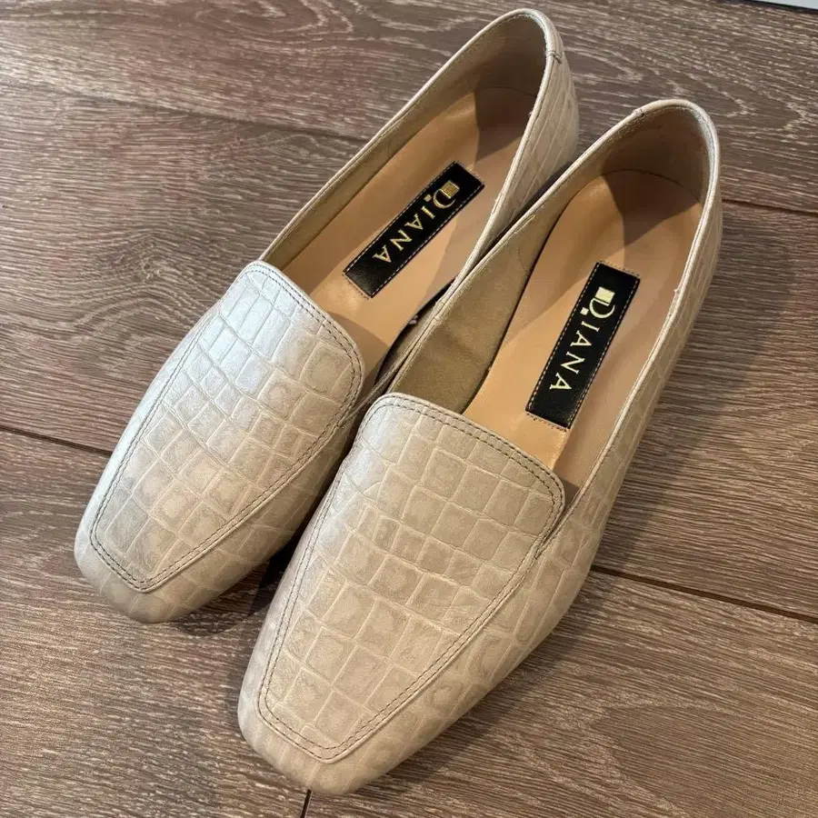 악어 엠보싱 베이지 로퍼, 22cm, 힐 약 2.5cm. - 브랜드: DIANA - 색상: 베이지 - 디자인: 악어 엠보싱 - 사이즈: 22cm - 굽 높이: 약 2.5cm 방문해 주셔서 감사합니다.