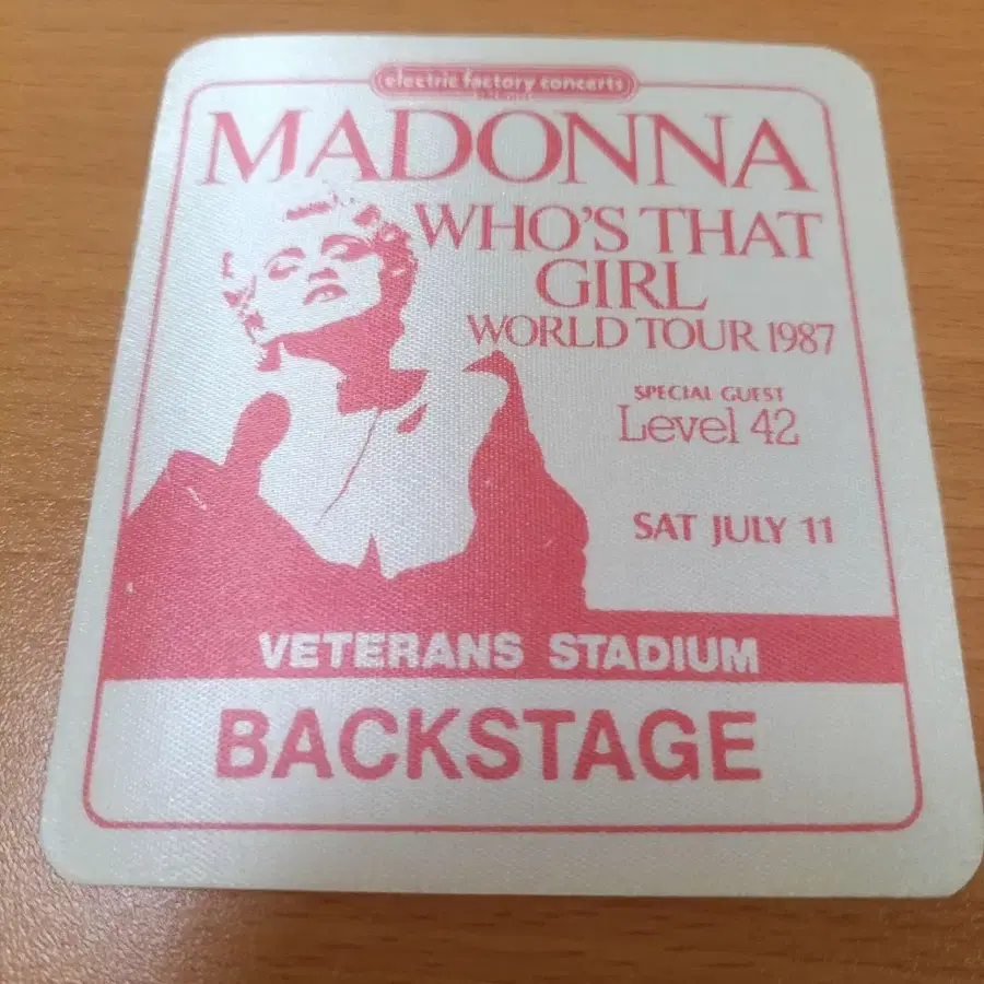 자동 번역되었어요. 원문보기마돈나의 북미 투어 'WHO'S THAT GIRL 1987' 백스테이지 패스. 스티커 타입. 콘서트 스태프용.