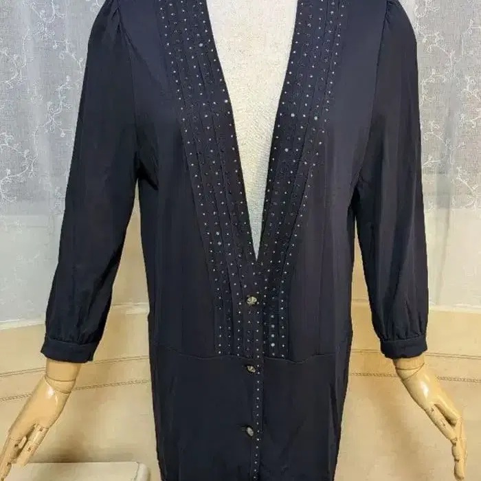 이타리야 롱 가디건 11 블랙 스톤 장식