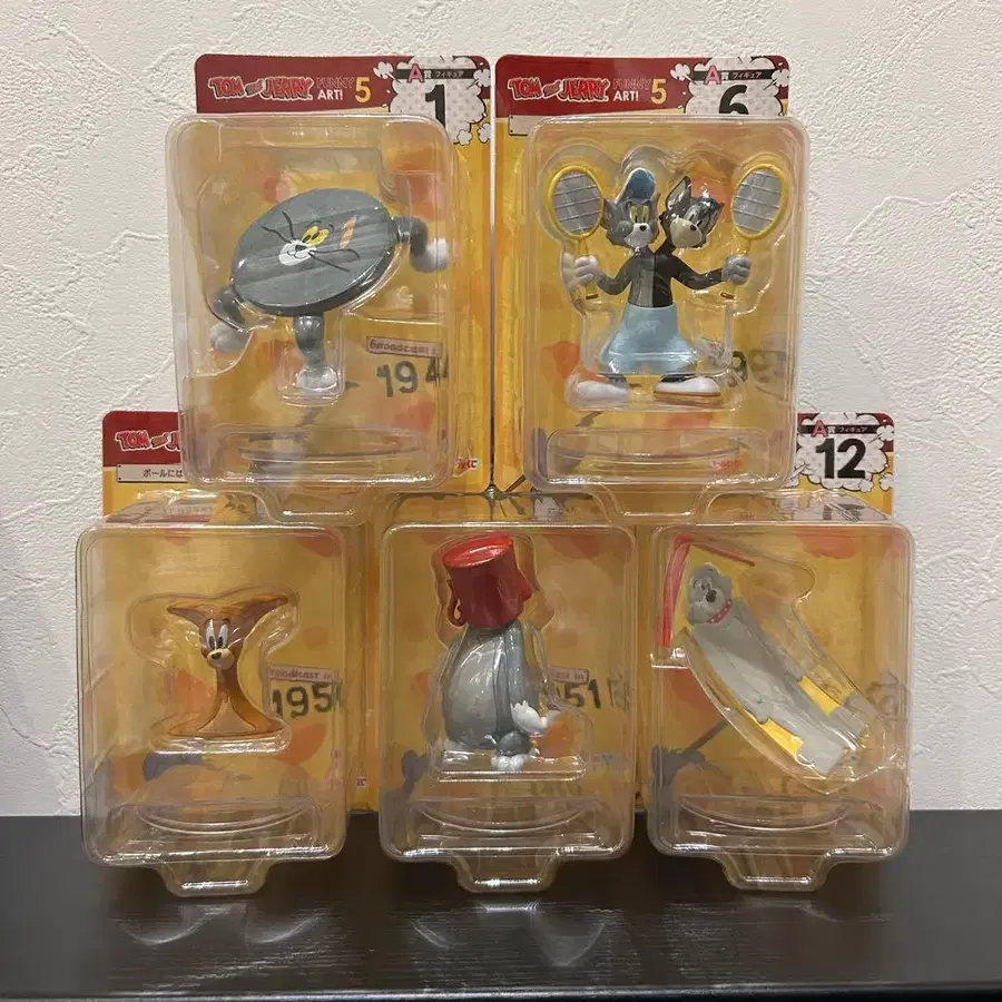 톰과 제리 [ TOM and JERRY FUNNY ART! ] 5 A상 피규어 5개 세트 1. 책이 된 톰 6. 달라붙은 톰과 부치 7. 공에 끼인 제리 8. 커피를 너무 많이 마신 톰 12. 찌부러진 스파이크 상자에서 꺼내 에어캡으로 포장하여 내용물만 발송합니다. 미개봉을 원하시는 분은 +300엔으로 대응 가능하니 댓글 주세요. 묶음 판매 가능합니다.