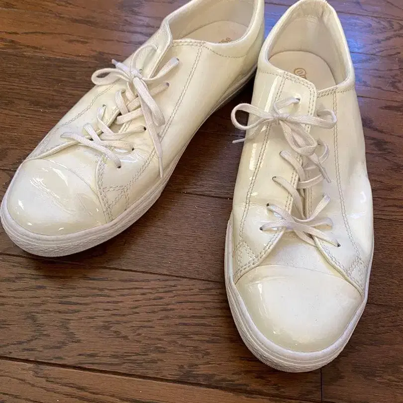 광택이 나는 화이트 캐주얼 스니커즈. - 브랜드: Converse - 색상: 화이트 - 디자인: 광택 마감 - 스타일: 캐주얼 방문해 주셔서 감사합니다. 사이즈 - 29cm 사이즈가 약간 크기 때문에 깔창 등으로 조정하면 좋을 것 같습니다.