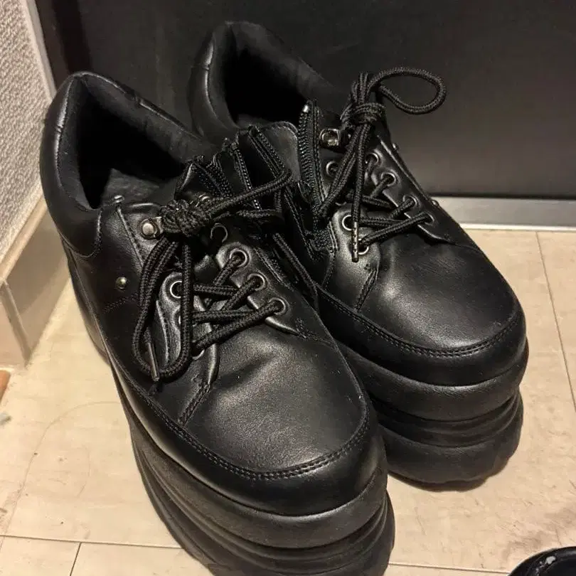 새상품 [ attagirl ] 통굽 레이스업 스니커즈 블랙 LL