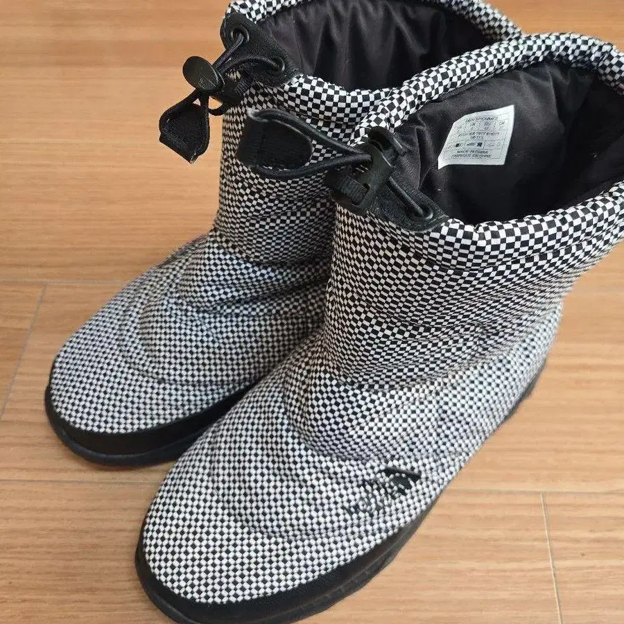 경량 방수 체크 무늬 숏부츠. - 색상: 체크 무늬 (화이트 블랙) - 디자인: 숏부츠 - 소재: 나일론 - 특징: 방수성, 경량 - 사이즈: 불명 (사이즈 택이 보이지 않음) 방문해 주셔서 감사합니다.