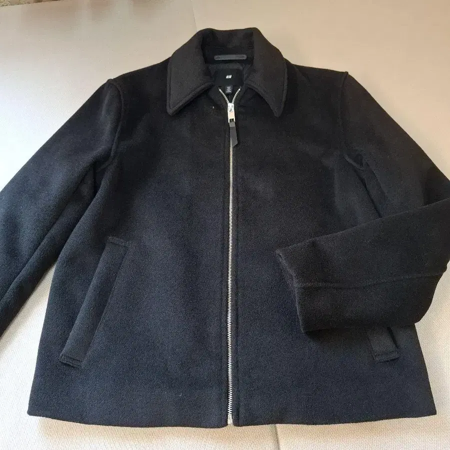 울 느낌의 블랙 집업 자켓, 카라 디자인에 사이드 포켓, 안쪽 포켓이 있어 매우 편리합니다!