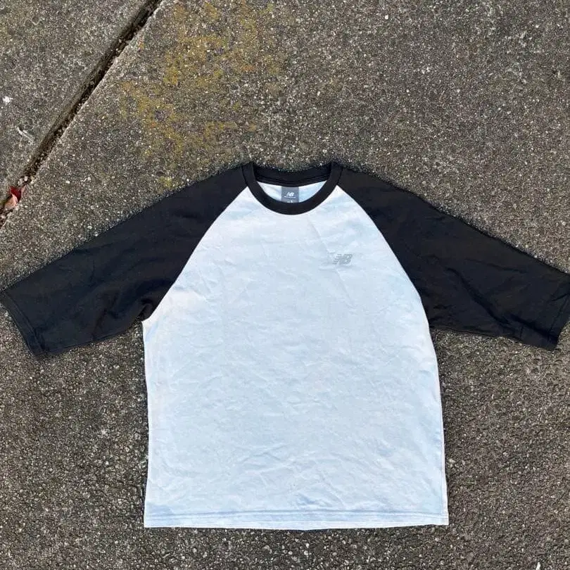 New Balance 7부 소매 티셔츠 S 사이즈 화이트/블랙