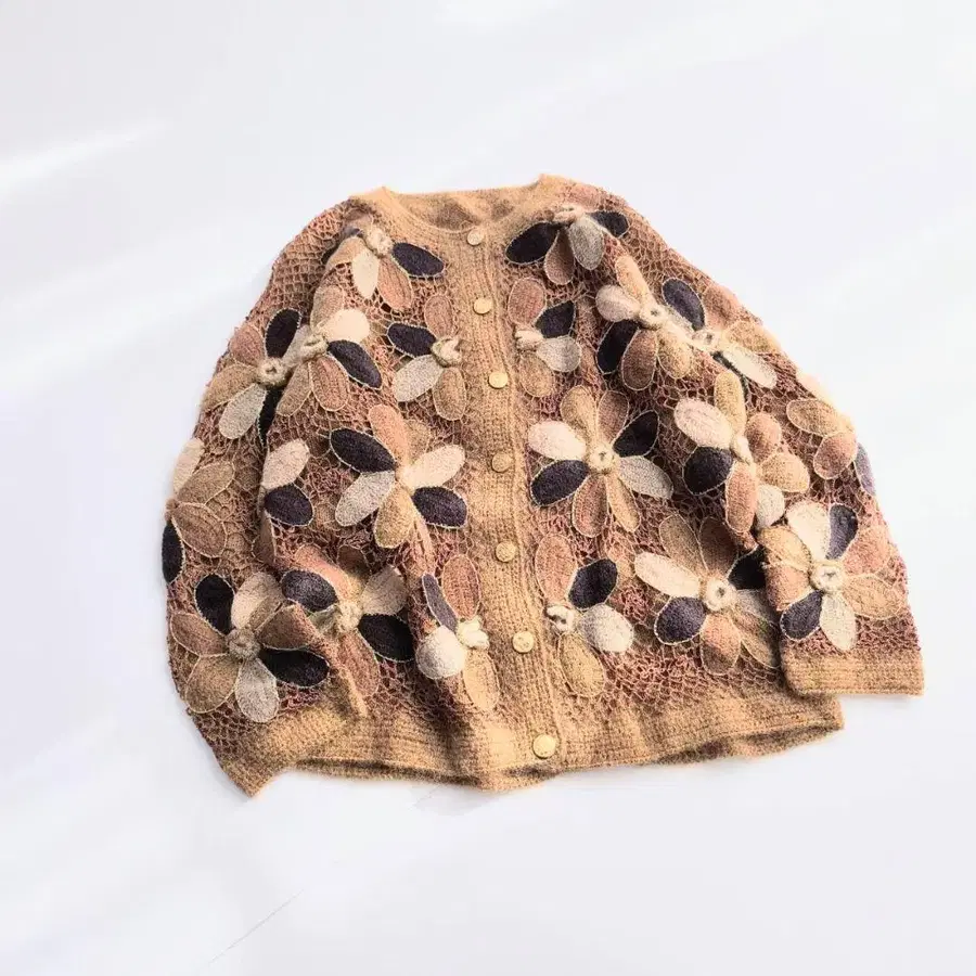 빈티지 대형 꽃 꽃무늬 모헤어 혼방 니트 가디건 브라운 P