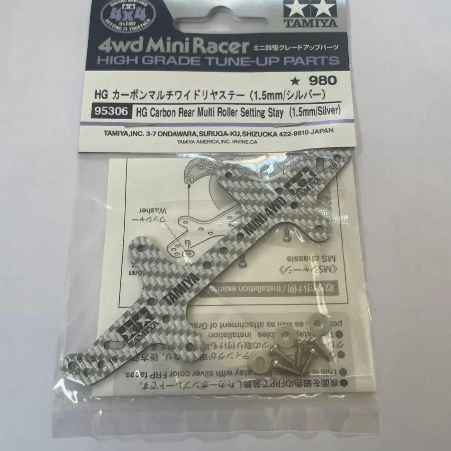 타미야 미니 사륜구동 카본 멀티 와이드 리어 스테이 1.5mm 실버