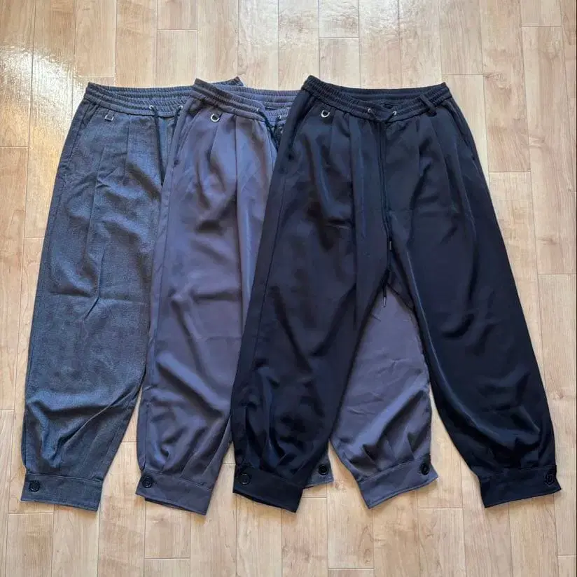 DOOPZ 커프스 이지 팬츠 블랙, 그레이, 그레이 체크 3종 세트입니다. 3회 정도 착용했습니다. 낱개 판매, 가격 인하는 불가합니다.