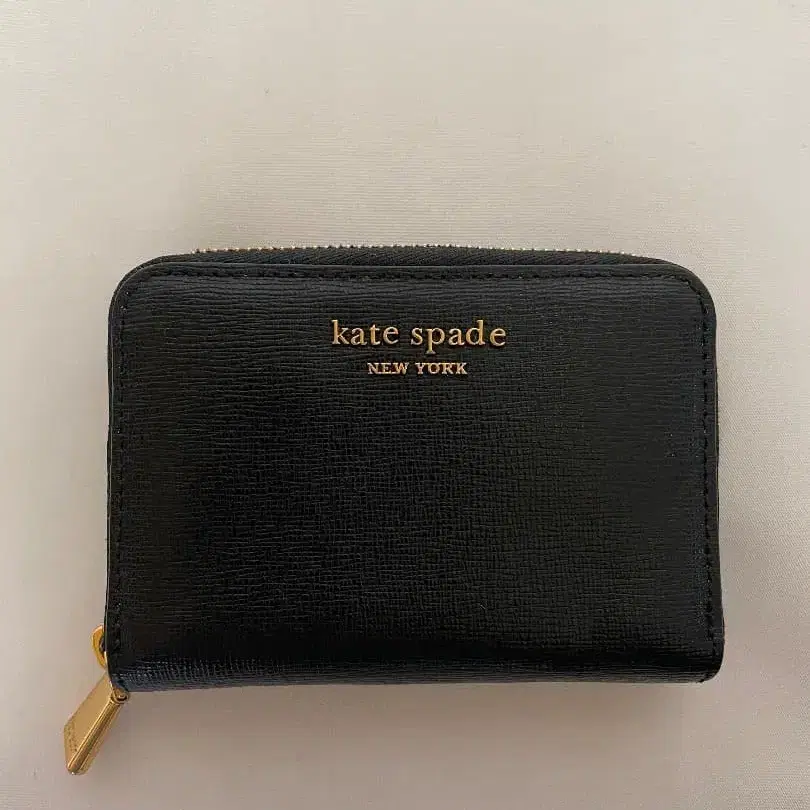 지퍼식의 블랙 합성 피혁 카드 케이스, 안쪽은 핑크.