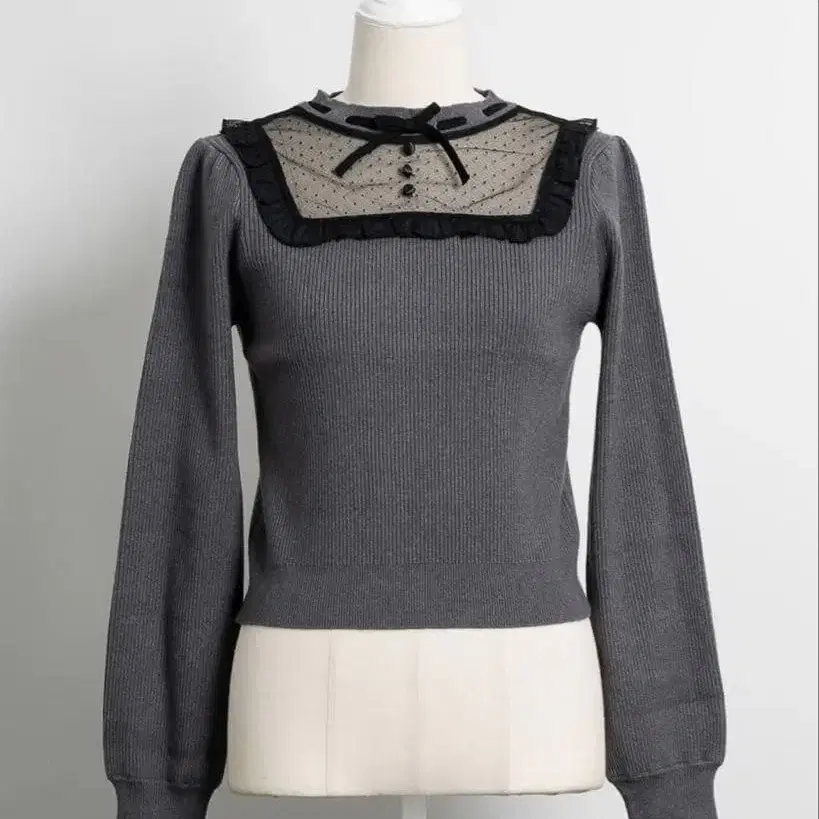 스퀘어 프릴 도트 튤 니트 - 차콜 / Free 1회 착용 후 세탁했습니다. 올풀림이나 얼룩은 없지만 1회 착용한 제품이므로 불량품이 아닌 이상 반품은 불가합니다. 정가 9000엔 사이즈 - FREE SIZE