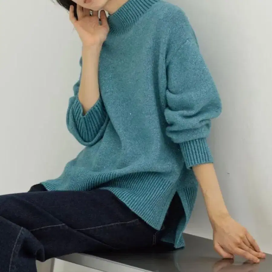 JENNE 대형 펄 터틀 니트