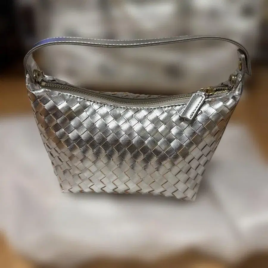 실버 색상이 귀여워요. 너무 화려하지 않고 짜임이 있어서 고급스러운 느낌입니다. 작아 보여도 장지갑, 핸드폰, 메이크업 파우치까지 의외로 들어가는 사이즈감입니다. 정가 15,000엔입니다. 가벼운 외출이나 파티에 사용하려고 했는데, 나가지 않아서 판매합니다.
