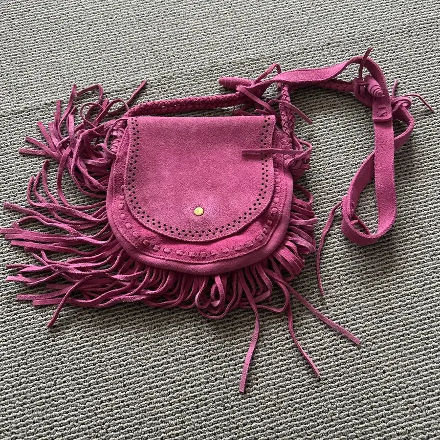 스웨이드 소재의 프린지 장식 핑크 숄더백. - 색상: 핑크 - 소재: 스웨이드 - 브랜드: dazzlin - 안쪽 포켓: 있음 - 프린지: 있음 방문해 주셔서 감사합니다.