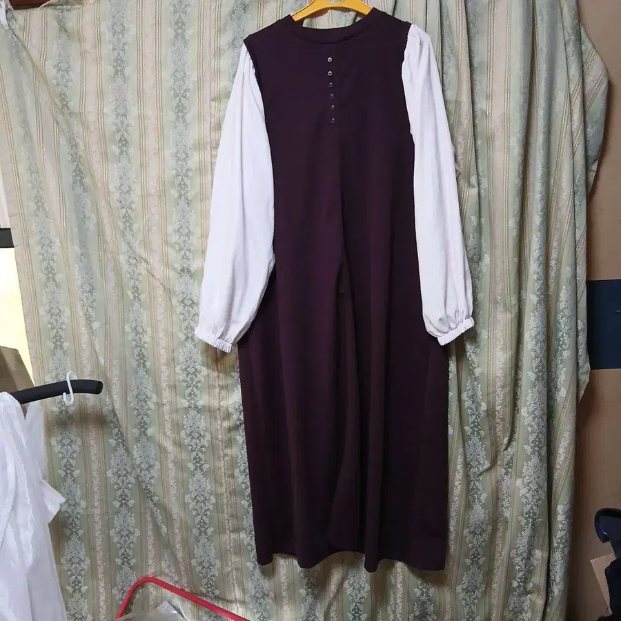 뒷면에 버튼이 있고, 긴팔 퍼플 원피스입니다. - 색상: 퍼플 - 소매 스타일: 긴팔 - 버튼 디자인: 뒷면에 버튼 포함 - 소매 소재: 화이트 원단으로 개더 처리 방문해 주셔서 감사합니다.