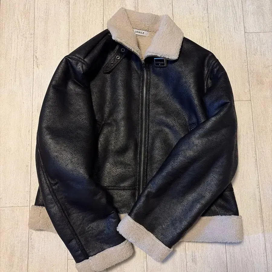 KOTA 착용 UNAILE 블랙 가죽 숏 자켓