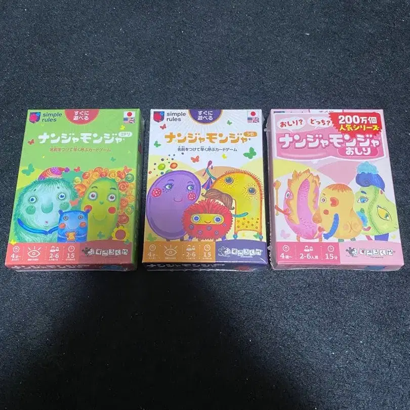 간단한 규칙으로 즐길 수 있는 가족용 카드 게임, 난쟈몬쟈. 게다가 미개봉 새상품, 미사용입니다. - 게임명: 난쟈몬쟈 - 대상 연령: 4세 이상 - 플레이 인원: 2-6명 - 플레이 시간: 15분 - 언어: 일본어/영어 - 내용물: 카드, 게임 규칙 설명서