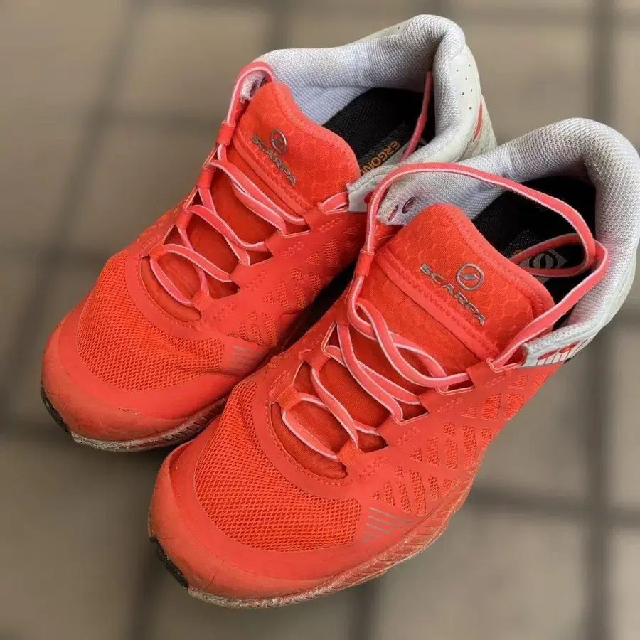 스컬파 스핀 울트라 우먼 사이즈 39.5 입니다. 몇 번 신었지만, 조금 작게 느껴져서 판매합니다! 비 오는 암반에서도 그립이 잘 들어 믿음직한 신발입니다. 밑창은 문제없다고 생각하지만, 힘든 컨디션 속에서 사용했기 때문에 발가락 등에는 약간의 흠집이 있습니다. [ 상품 설명 ] 스핀 울트라의 우먼 모델. 100마일 등의 장거리 레이스나 하드한 트레이닝을 상정하고 있습니다. 6mm 드롭이면서 도톰한 쿠션으로 발의 피로를 경감. 스핀 RS보다 도톰한 TPU 케이지 어퍼를 채용하여 내구성이 뛰어납니다. 헤비 듀티한 외관이지만, 중량은 억제되어 있습니다. 라이닝 스트레치 패브릭 재질 패브릭/필름 밑창 비브람 VELOX LB MAX (메가 그립) 중량 225g(#38, 1/2 페어) 드롭 6mm (후면 24mm, 전면 18mm)